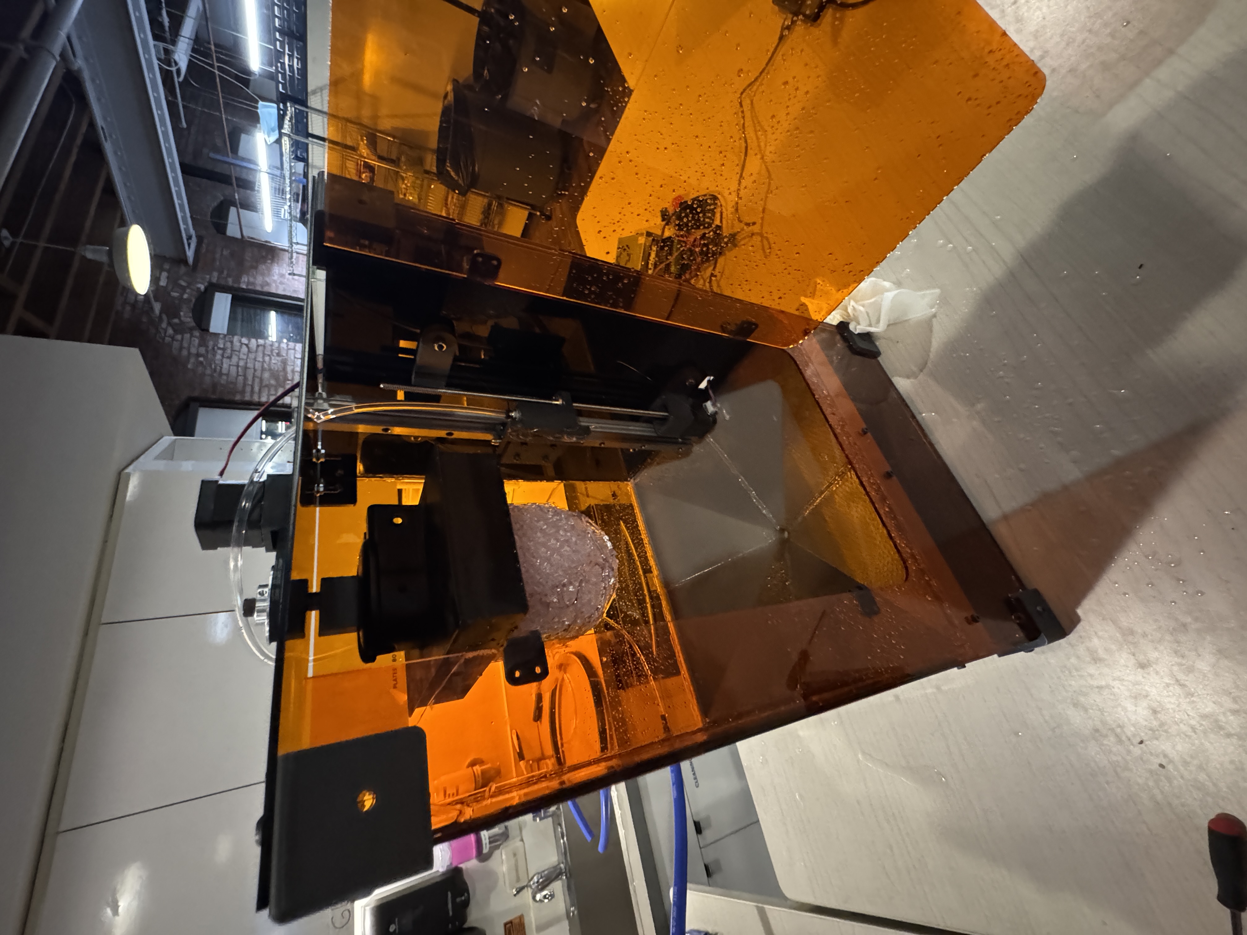 After washing, an array of UV LEDs cures the part while it spins, helping it dry evenly and preventing pooling or streaking. I wrote the firmware to coordinate the pump, valves, stepper motors, and UV LEDs into a single automated wash-and-cure cycle, effectively turning what used to be a messy, multi-step manual process into a one-button operation.